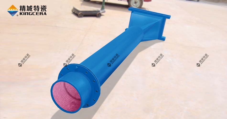 陶瓷襯板,它的制作和安裝工藝都相對復雜。首先,天圓地方管內部為弧形結構,需要采用多種形狀的陶瓷,讓方形和弧形內襯更平整光滑過渡,且不存在方管面與圓管面間的掛料角,這樣才能盡可能的避免積料和堵煤。而且陶瓷弧度按圓管直徑設計,每圈陶瓷拼接成一個圓形,使瓷塊之間緊密連接,無縫隙;當一圈的最后一塊緊密嵌人后,瓷塊之間形成360°的機械自鎖力,保證了陶瓷片安裝牢靠不脫落。