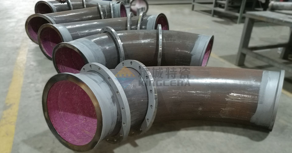 4、自蔓燃式耐磨陶瓷復合管,雖然該種產品制作工藝相對簡單,制作周期短,成本相對較低。但缺點是:彎頭都是采用蝦米節(jié)段焊接在一起的,內部拐彎的部位有縫隙,即便燒結完成后用耐火泥修補,也是內部粗糙,給長期使用留下了隱患。